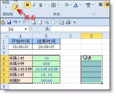 选取B2:B8区域 - 双击格式刷 - 刷向D列。格式复制了过去,只是表格内容没有复制过去。