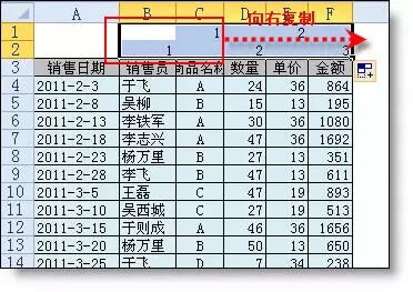 在表格上插入两行,然后对角输入1,1,然后选取这两列向右复制