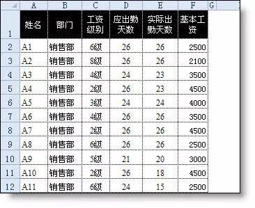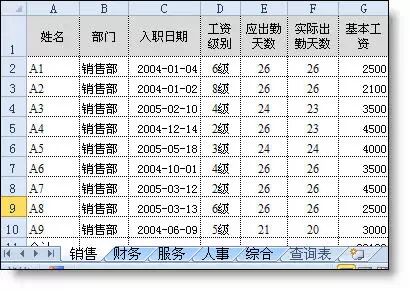 【例】工资表模板中,每个部门一个表。