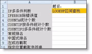 【例】如下图所示,A列是备选题目,要求在B2单元格中从A列随机抽取题目。