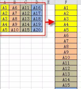 如下图所示的表格中有4列数据(可以有任意多列),现要求合并成一列显示。如下图所示。