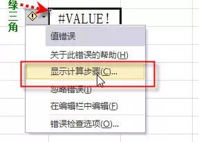 1、 打开单元格左上角绿三角,点“显示计算步骤”