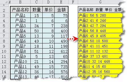 【例】如下图所示,要求把左表的四列合并成到一列,如右表黄色区域所示。