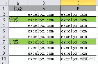 当A列值是“完成"时,该行能“自动”填充为绿色。如下图所示。