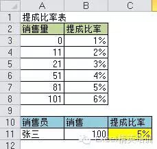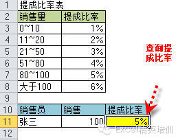 点评:vlookup第4个参数省略时,可以实现区间查找。