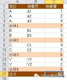 点评:(所有明细+小计)/2 的结果正好是总计数额。妙!