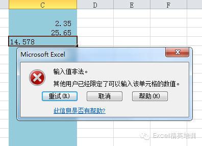 接下来我们就可以利用数据有效性功能对单元格输入进行限制: