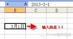 5 在单元格中输入 3-1 ,输入后会变成日期格式。如下图所示