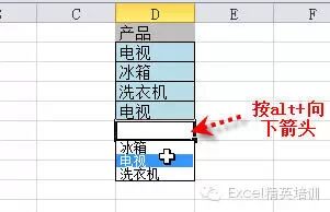 在下表中的D列按alt+向下箭头,可以根据已输入过的内容自动生成下拉列表。