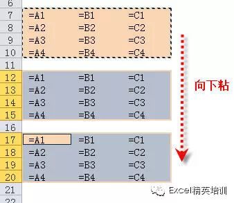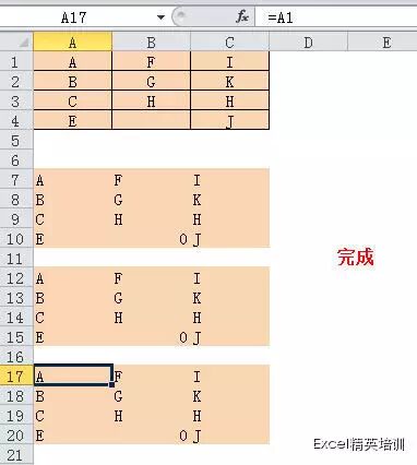 第三步:复制A7:C10,选取下面所有需要链接的区域 - 粘贴。