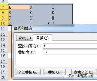 第四步:CTRL+H替换,把" ="替换为"="