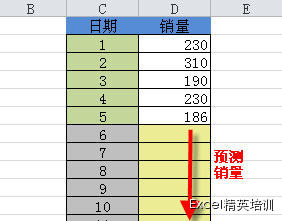 如下图所示。已知前5天的销售量,要求预测本月后面日期的销量。