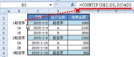 上面公式可以用COUNTIF生成 序数+姓名 的格式。如下图所示。、