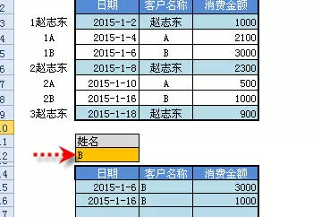 完成公式输入后,赵志东所有的消费记录就筛选出来了。
