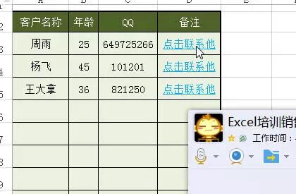 D3 =HYPERLINK("tencent://Message/?websiteName=qzone.qq.com&Menu=yes&Uin="&C3,"点击联系他")