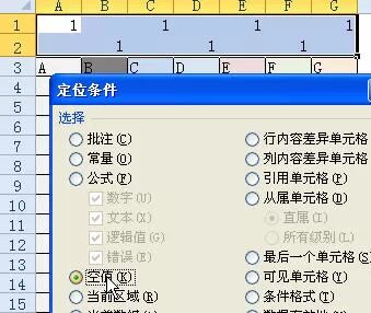 步骤2:CTRL+G定位 - 定位条件 :空值。