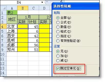 第2步 复制表1,选择性粘贴 - 跳过空单元