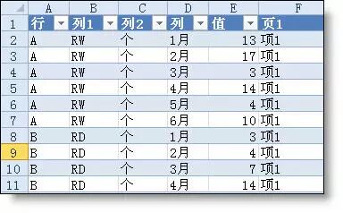 【例】如下图所示,把上表的格式转换成下表的格式,月份由按行显示,转换成按列显示。