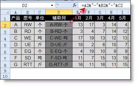 如果产品的基本信息大于1列,可以添加辅助列并设置连接公式