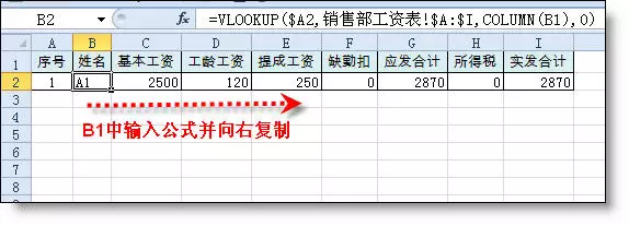 =VLOOKUP($A2,销售部工资表!$A:$I,COLUMN(B1),0)