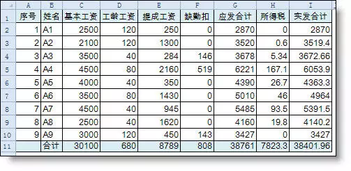 工资表(一定要有序号列)