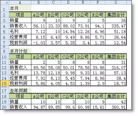 设计合并报表,在一个表中存放所有公司的本月、本年累计等数据。