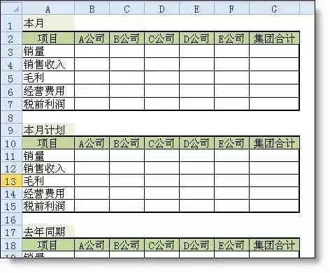 各分公司数据全引入到汇总表后,接下来设置公司月报表。