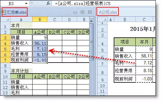 引入数据。可以用=号一个个的引用,也可以选择性粘贴 - 粘贴链接的方法。(复制分公司表中区域,选取汇总表存放该公司数据位置,右键菜单中点“粘贴链接”)