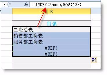 3、输入到工作表中,用INDEX逐个提取工作表名称