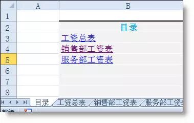 {"目录","工资总表","销售部工资表","服务部工资表"}