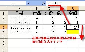 在excel表中增加新记录时,总需要反复复制上一行的公式,如果公式能自动复制,肯定可以方便的多。但怎么做到呢?