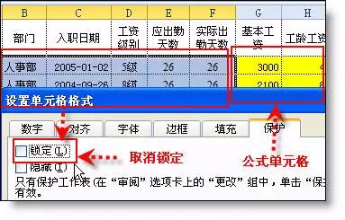 选取非公式的填写区域,取消单元格锁定。公式区域不必操作。
