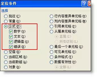 选取表格区域 - 按Ctrl+g打开定位窗口 - 定位条件 - 公式,即可选取表中所有的公式