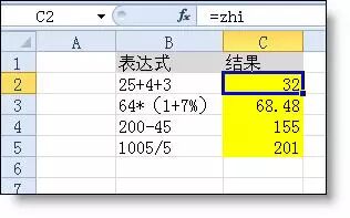 在B列输入公式 =zhi即可把B列表达式转换为值