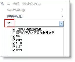 在搜索框中输入1*,这里*是通配符,可以是任意多个字符
