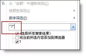 在搜索框中输入"7",添加双引号后可以精确筛选。