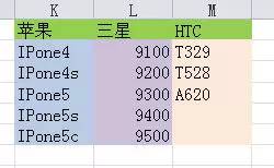 步骤1:设置数据源区域。就是把手机名称和型号整理成如下图格式备用,存放的位置随意。