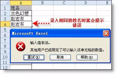 选取要防止重复录入的单元格区域,数据 - 有效性 - 自定义 - 公式:
