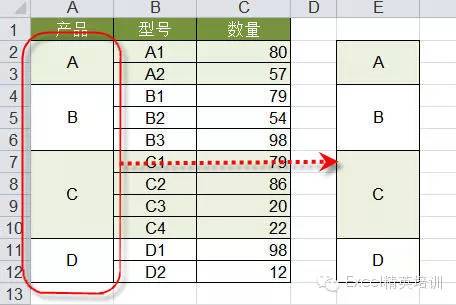 第五步:用格式刷把E列的格式刷到A列,恢复A列的合并格式。