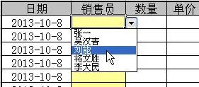 进行如上设置后,我们就可以在销售员一列看到下拉菜单了。