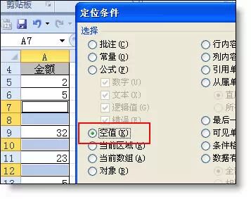 选取A列区域 - ctrl+g打开定位窗口 - 空值 - 删除整行