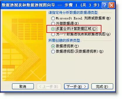 1、按alt+d组合键,松开后再快速按p键。会打开数据透视表向导,在第一步中选取“多重合并计算数据区域”。