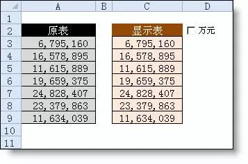 左表为源表,右表为显示表。右表旁有一个框(万元)。