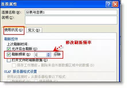 7、切换到使用状况,设置刷新频率。最小1分钟。