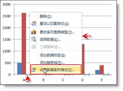 2、选取完在比率系列,右键菜单中点击“设置数据系列格式”