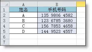 【例】:如下图所示B列的手机号码,要求显示成*** **** ****的格式。
