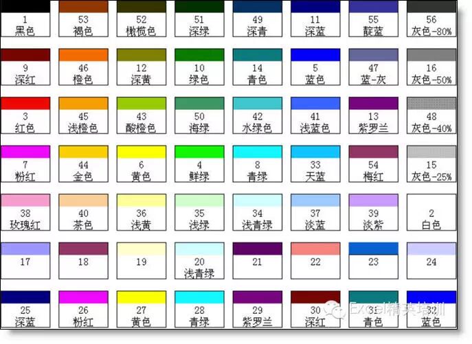 3 [颜色+数字]表示符号条件时显示的颜色。其中数字指excel中内置的颜色。具体如下: