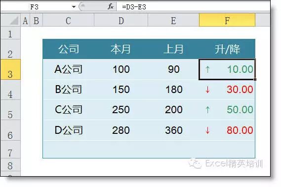 3 数据分析中,对比分析法是最常用的。今天我们学习一个可以自动添加上升和下降箭头的功能。非常非常的实用。