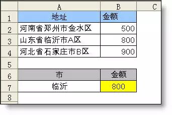 【例7】如下图所示,要求根据地址从上表中查找所在城市的提成。