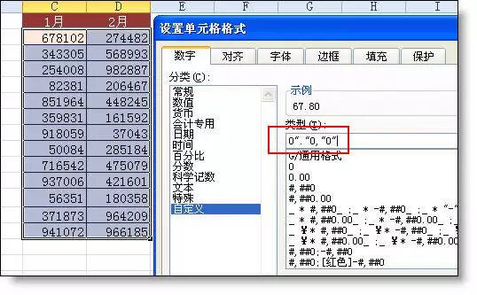 选取F列区域,按ctrl+1(数字1)打开单元格格式设置窗口,数字 - 自定义,在右侧的代码框中输入: